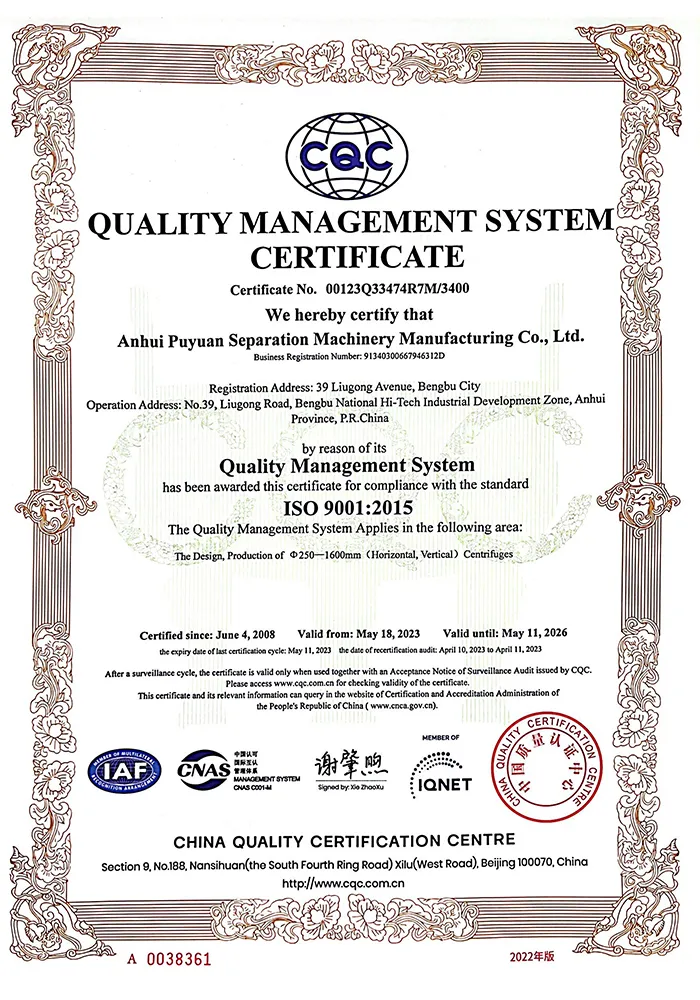ООО Аньхой Пуюань Производство сепарационного оборудования ведет свою историю от Бэнбуского завода легкого и фармацевтического машиностроения, основанного в 1966 году, и является одним из старейших предприятий Китая, специализирующихся на разработке и производстве центрифуг. Компания завершила реструктуризацию в 2005 году и в настоящее время располагается в Национальной зоне развития высоких технологий Бэнбу. Основная продукция включает серии декантерных центрифуг и вертикальных фильтрующих центрифуг, которые широко применяются в пищевой, фармацевтической, химической, нефтехимической промышленности, а также в сфере охраны окружающей среды. С момента основания компания неизменно придерживается основной концепции «Выживание благодаря качеству, развитие благодаря репутации», стремясь предоставлять клиентам по всему миру высококачественные решения в области сепарационного оборудования.